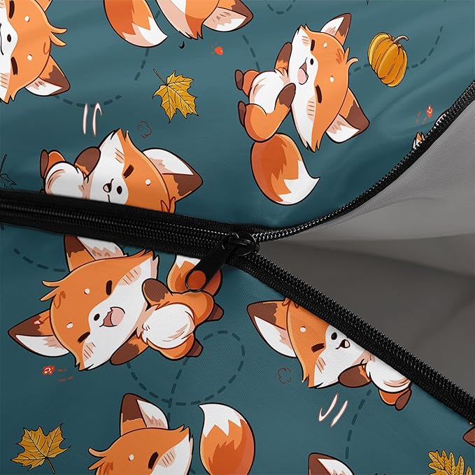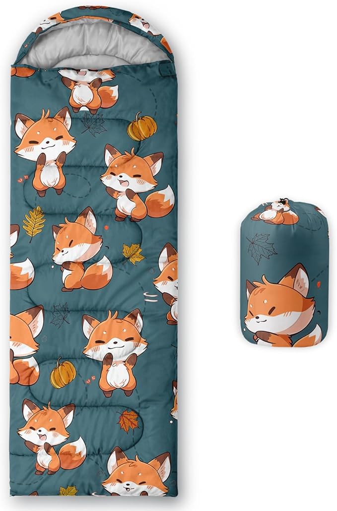 • 【Fashion Design】This unique sleeping bag features a squirrel pattern design and comes with autumn golden fallen leaves and pumpkin.It is waterproof and lightweight, making it easy to carry and suitable for camping and mountaineering.