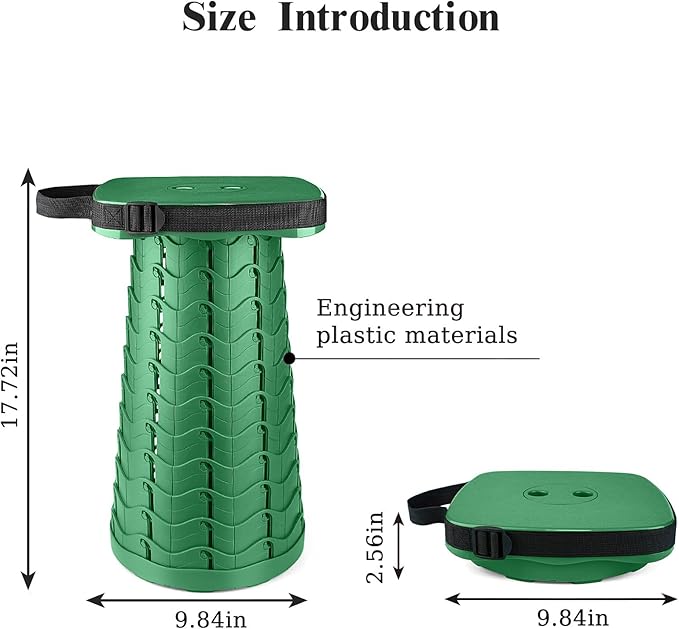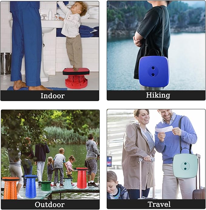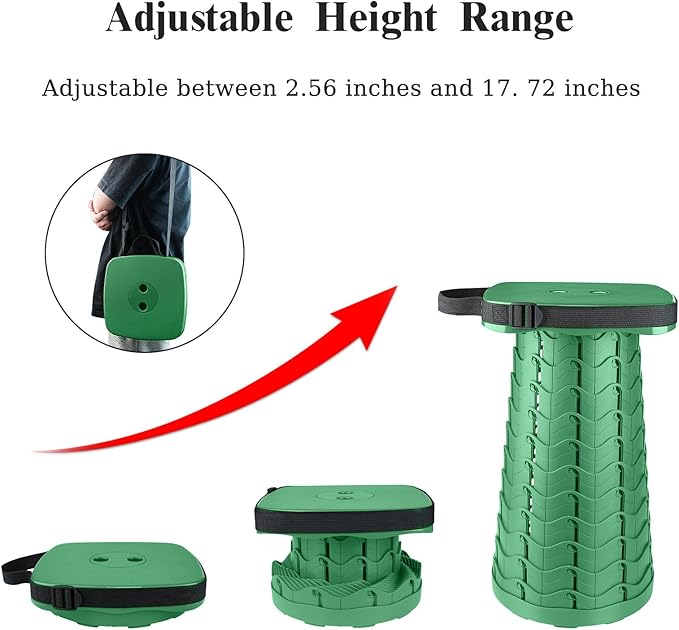 • Adjustable Height: 2.5-17.8inch can be adjusted according to your needs. Telescoping stool perfect to use for adults camping, hiking,travel, picnic, match and BBQ. Also can be used in living room, kitchen, bedroom, bathroom etc.