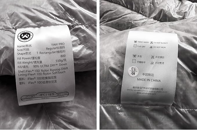 • The fabric of Tiny Pro is made of high-quality 10D ultralight nylon, It has anti drilling technology, providing you a comfortable outdoor experience.We choose 800FP high-quality ultra dry down pro, which has high fluffiness and warmth retention. It provides good warmth and weigh ratio, packs small and compact--great for outdoor trave.