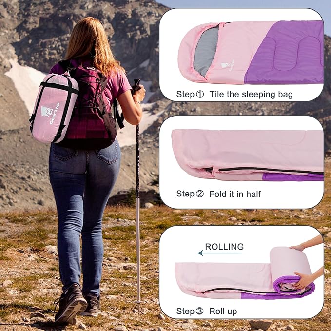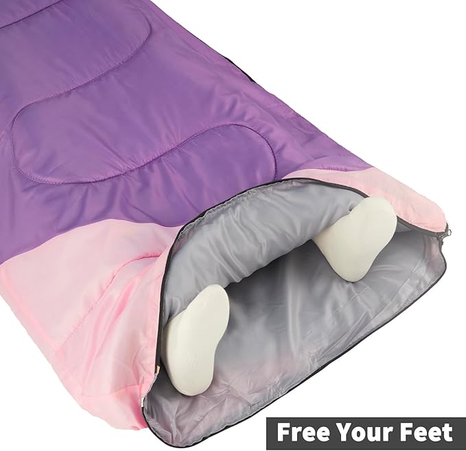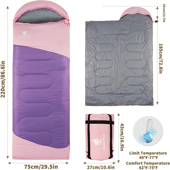 • 【Sleeping Bag for Adults and Kids】Using size - 86.5‘’(L) x 29.5" (W) , comfortable sleeping bag size for adults, and it is spacious for kids or teenagers. Enjoy a good night's sleep with this sleeping bag in your camping trip. Comfort temperature is 62°F - 75°F. Limit temperature is 40°F - 77°F.