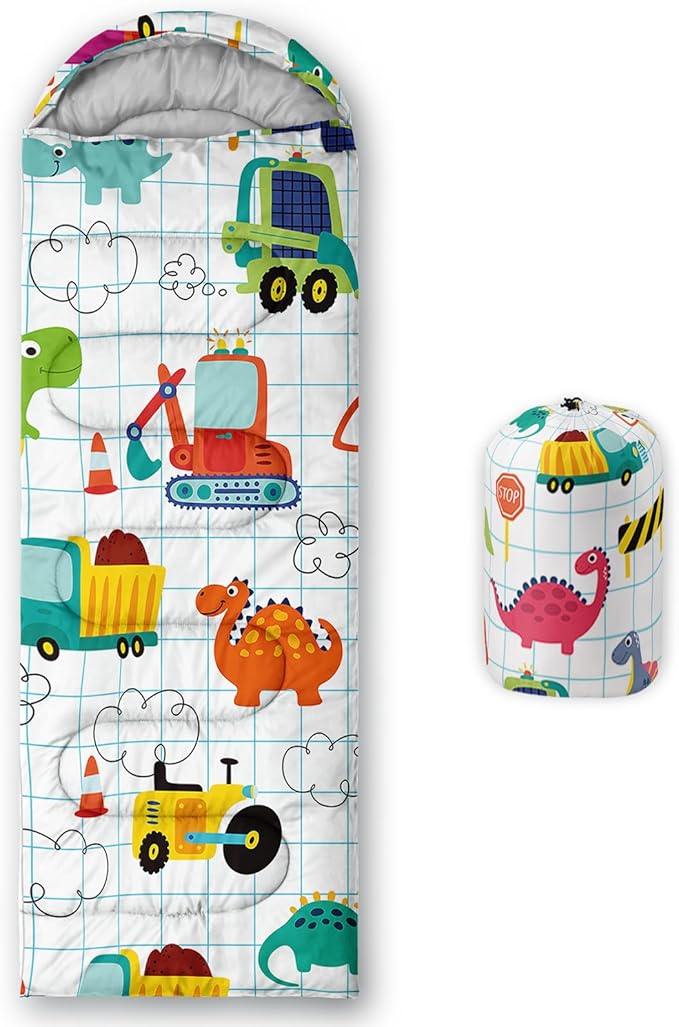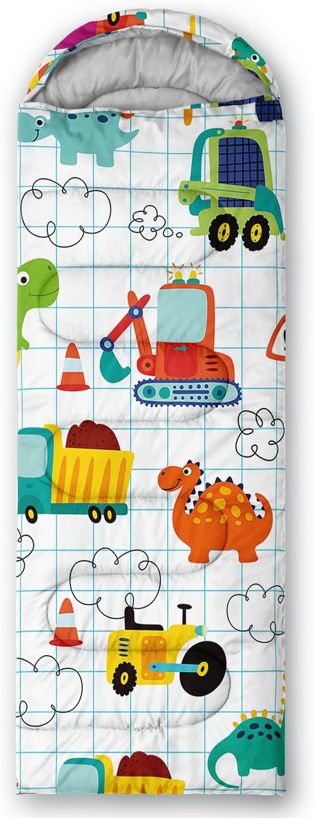 • 【Fits For 3 Seasons】: Size - 31 by 90 inches (W x D). Our Dinosaur Tractors sleeping bag can be used in 3 seasons with a design temperature of 32℉-77℉(0℃-25℃). These Sleeping bags also have a weather resistant waterproof design to keep you warm and prevent you from any dampness.