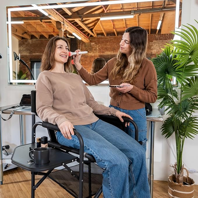 SUNNYFEEL Tall Camping Directors Chair, Portable Folding Artist Makeup Chair with Side Table, Pocket, Footrest, Heavy Duty for Beach,Trip,Picnic,Concert Outdoor Foldable Camp Lawn Chairs