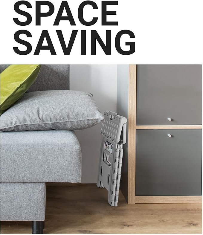 • Lightweight & Easy to Store : Opens with one flip of the hand and easily folds away. It is only about 1.2" wide when folded and is easy to store in any narrow space in your kitchen, bathroom, bedroom, utility, etc. You can even keep it folded in your RV to take along with you wherever you go. It is sure to come in handy when you're on an outdoor adventure, camping, fishing, and more