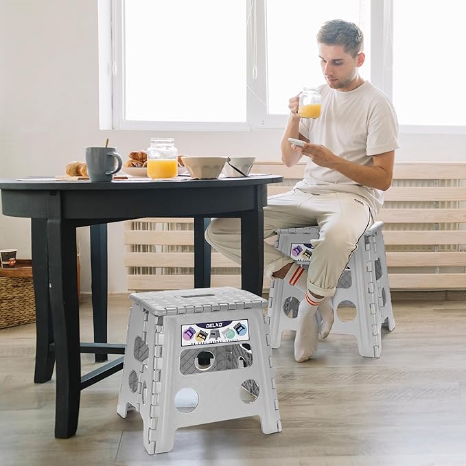 Delxo Folding Step Stool, 13 inch Non-Slip Foldable Stools for Kids & Adults Up to 300 LBS, Step Stool with Handle, Lightweight for Kitchen, Bathroom, Bedroom, Garden, Grey, 1PC