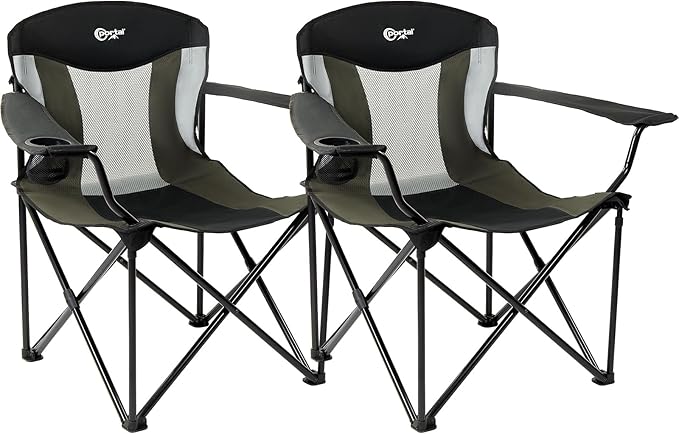 PORTAL Oversized Camping Chair Big and Tall Folding Camp Chair Portable Lawn Chairs Heavy Duty Foldable XXL Outdoor Camping Chair for Adults, Support Up to 600 lbs, Black/Grey