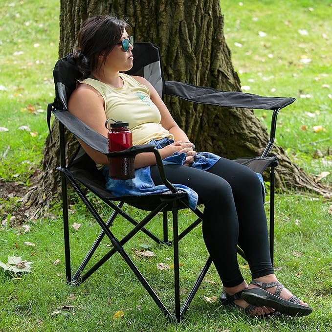 • XXL Folding Chair- The oversized camping chair is designed to be larger and support a higher 600 lbs weight capacity than a standard camping chair, providing extra space and comfort for the user