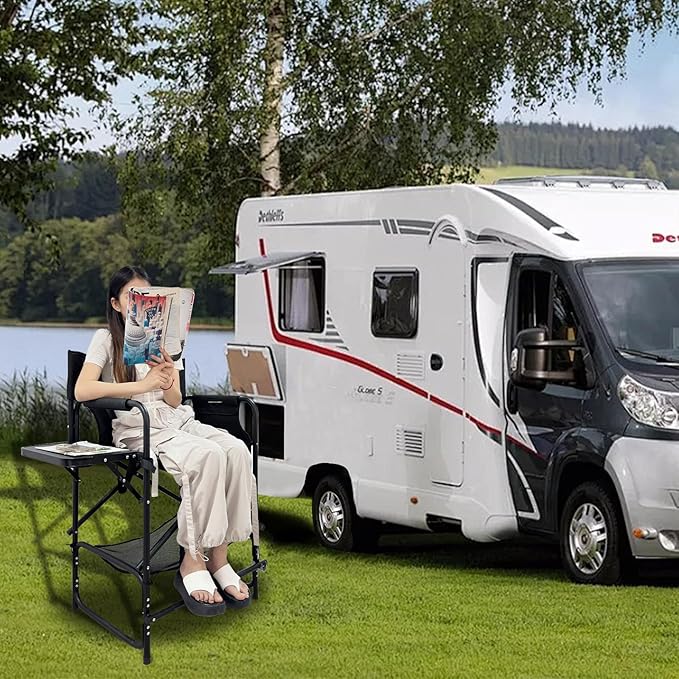 • Ideal Work Assistant: The high folding chairs 26.77" seat height, it allows you to elevate your position. Better seeing the full field and mastering the audience .Tall camping chairs also allow you to do better makeup and work.