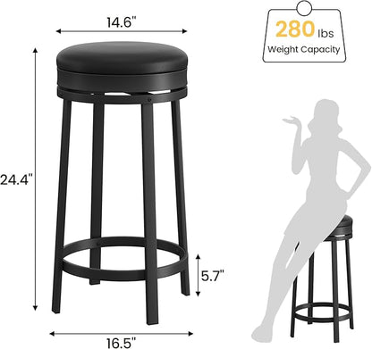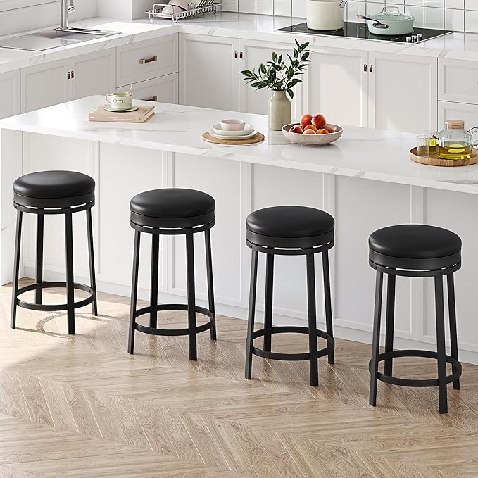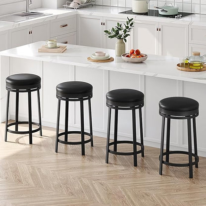 IDEALHOUSE 24'' Swivel Bar Stools Set of 4 with Footrest, Modern Counter Height Barstools with PU Leather Upholstered and Metal Frame, Backless Round Bar Stools for Kitchen Island, Black