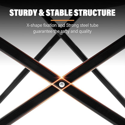 • 【Durable and Sturdy】 The foldable chair is made with sturdy 600D oxford material and reinforced X-shaped steel frame,it can support up to 350 pounds.The legs of the chair are designed with rotatable duck feet which ensure great stability