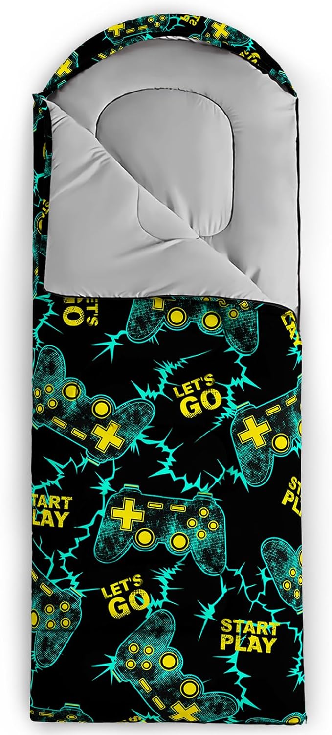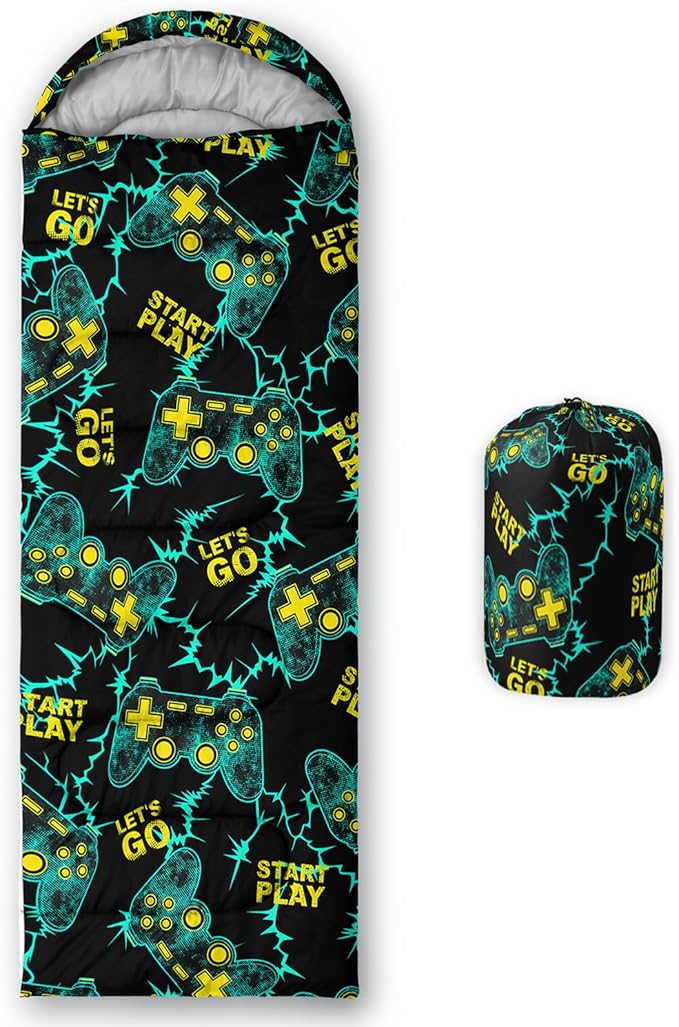 • 【Fits For 3 Seasons】: Size - 31 by 90 inches (W x D). Our Green Game Gamer sleeping bag can be used in 3 seasons with a design temperature of 32℉-77℉(0℃-25℃)