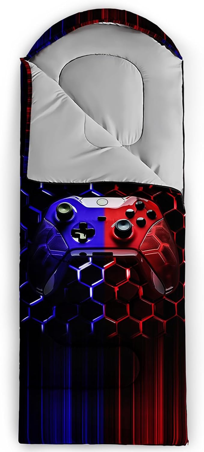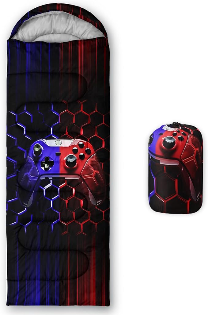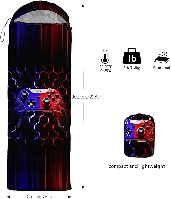• 【Fits For 3 Seasons】: Size - 31 by 90 inches (W x D). Our Red Purple Game Gamer sleeping bag can be used in 3 seasons with a design temperature of 32℉-77℉(0℃-25℃)