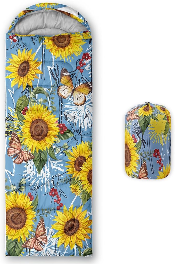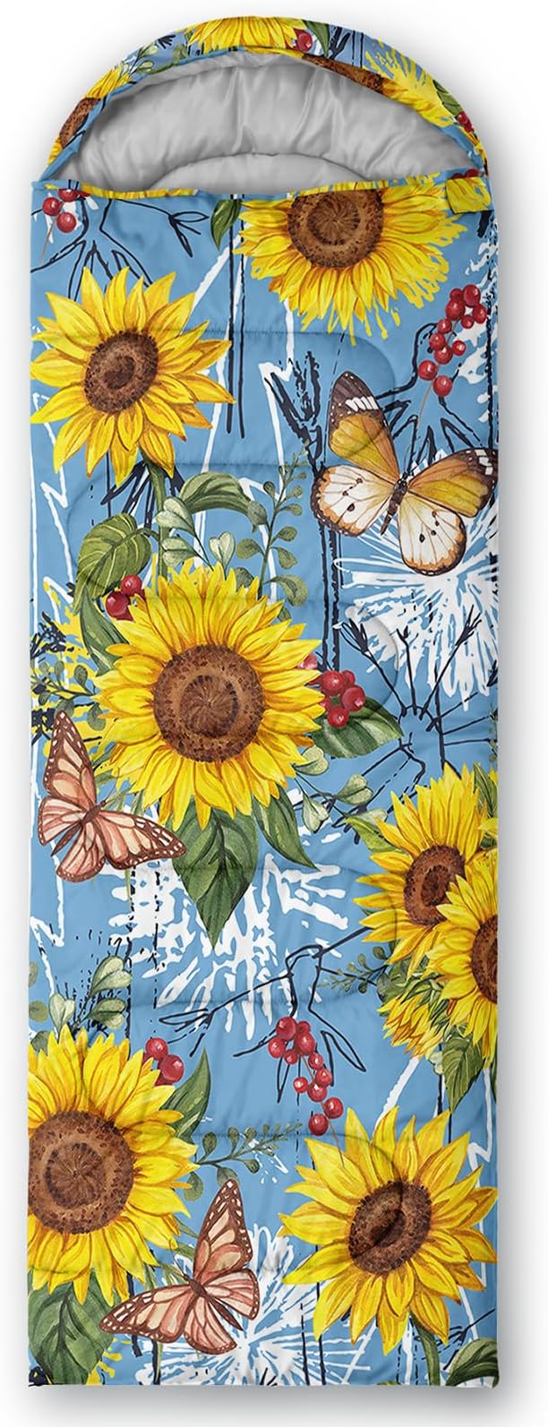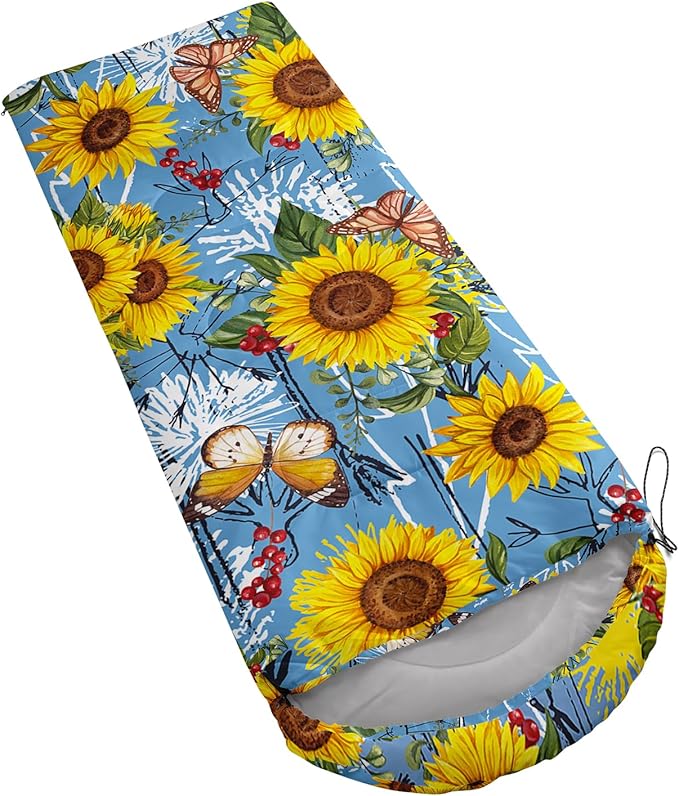 • 【Fits For 3 Seasons】: Size - 31 by 90 inches (W x D). Our Sunflowers Butterfly sleeping bag can be used in 3 seasons with a design temperature of 32℉-77℉(0℃-25℃)