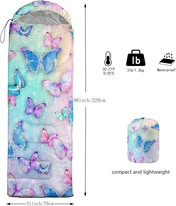 • 【Fits For 3 Seasons】: Size - 31 by 90 inches (W x D). Our sleeping bag can be used in 3 seasons with a design temperature of 32℉-77℉(0℃-25℃). These 0 bags also have a weather resistant waterproof design to keep you warm and prevent you from any dampness