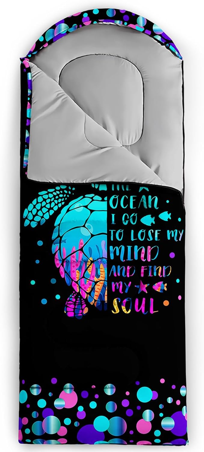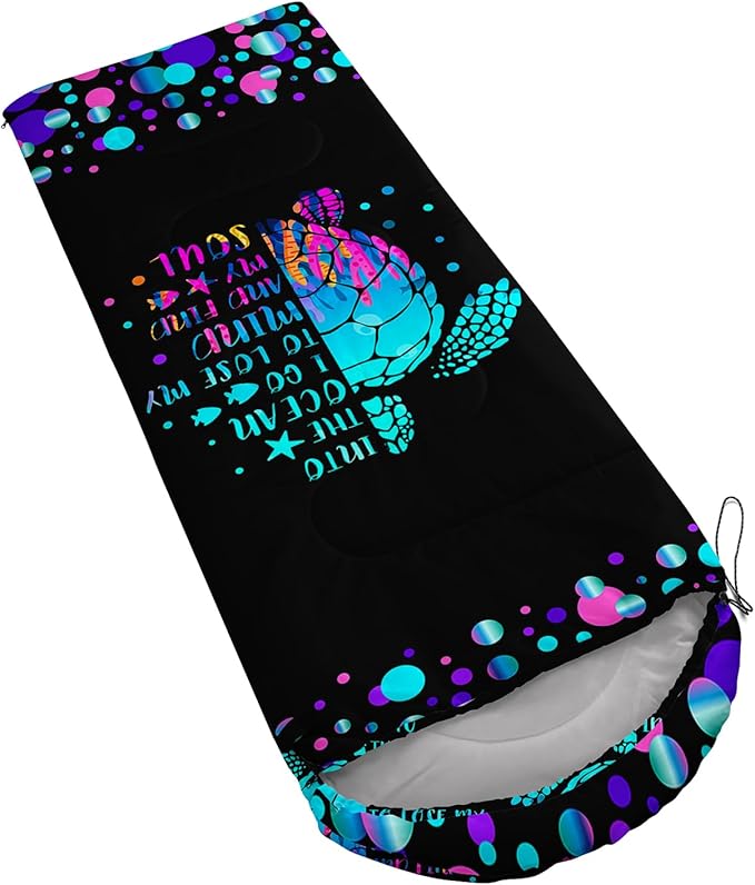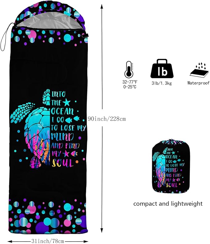 • Applicable For 3 Seasons: Our colourful sea turtle sleeping bag can be used temperatures ranging from 32°F-77°F Except for the cold winter,sleeping bag have weatherproof to prevent from dampness,Size is 31 x 90 inches