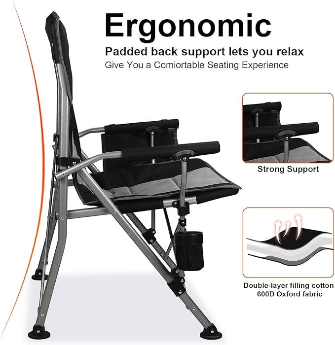 • Convenient Design: This camping chair features a cup holder, allowing you to enjoy your favorite beverage while relaxing outdoors. The mesh backrest provides excellent breathability, keeping you cool and comfortable even on hot summer days.