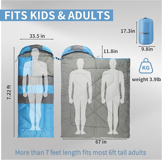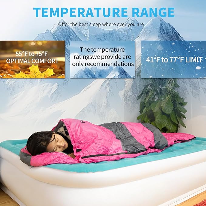 • Comfort for All Ages: Sleep well with Perihw sleeping bag, three different color ( Pink/Blue/Black) loved by everyone. No matter how tough the terrain or long the day, our camping sleeping bags are engineered to guarantee you a good night’s sleep.