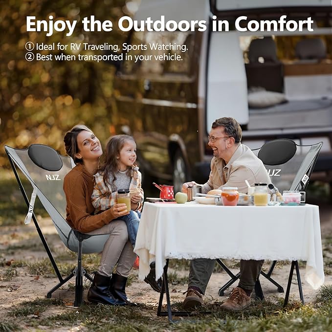 • High Back Design: The NJZ outdoor folding chairs for adults has a high back design that provides effective support for your back. The oversized camping chairs for adults also features a headrest for extra head support, ensuring the ultimate in relaxation