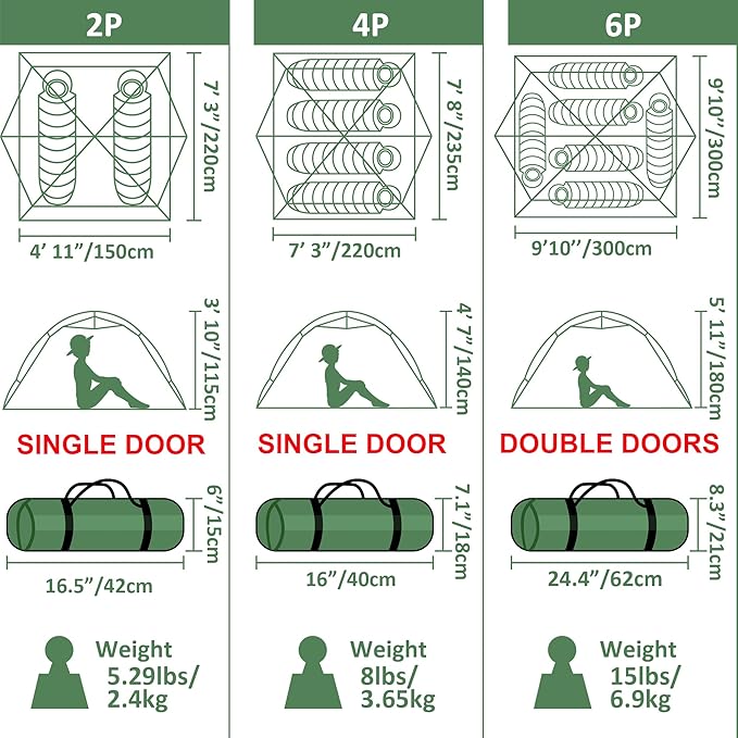 • 2 PERSON TENT: Two person tents are favored for their lightweight and comfortable size. The Clostnature 2 person backpacking tent is spacious enough, with dimensions of 7’3’’x4’11’’x3’10’’, providing ample space for two adults to feel comfortable. Additionally, this lightweight tent comes with a compact storage sack, sized 16.5’’x6’’x6’’, which is easy to put into the backpack for portability and weighs only 5.29lbs, offering a perfect blend of comfort and convenience