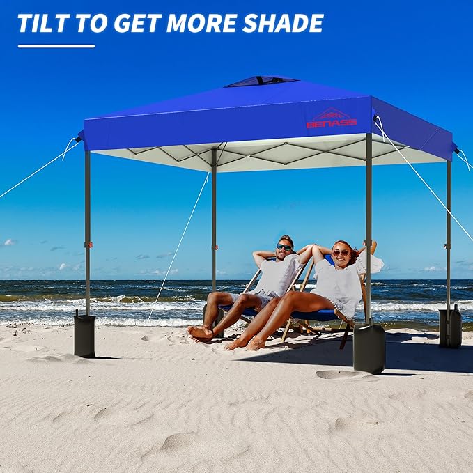 • Tilt for More Shade - You can adjust the different heights of the opposite legs so that the top of the canopy faces the sun, and you can get more shade. And then matched with 3 pieces of removable sidewalls, you can enjoy your time to the fullest