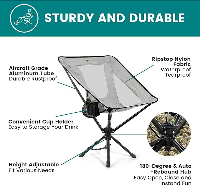Portable Camping Chair - SwivelCore 180 Swivel & Auto-Return, Small Compact Lightweight Folding Chairs for Adults, Outdoor Backpack Chair for Adventures, Setup in Seconds, Support 300 LBS