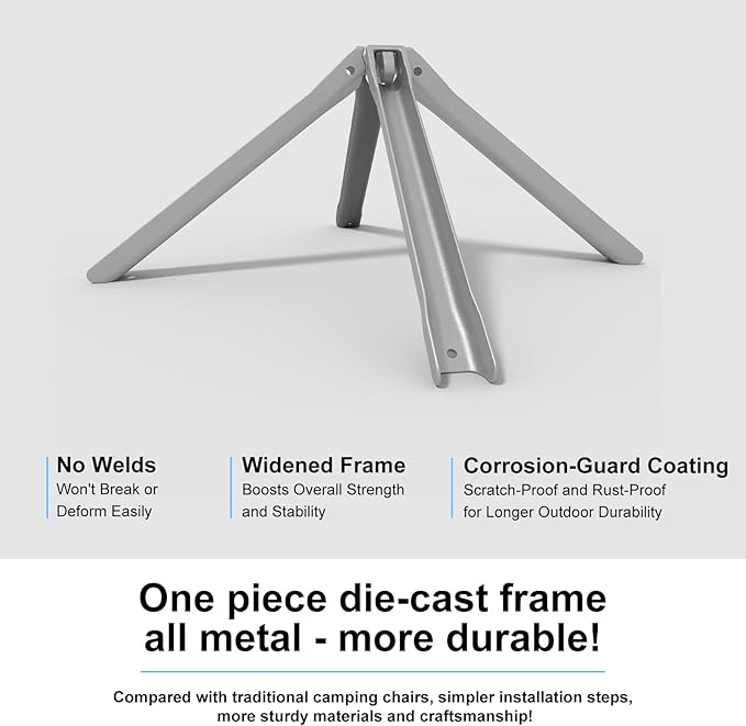 • 【 Quick Fold and Stable】: the ultralight outdoor chair for camping no assembly required, ready to use within seconds of opening; Thickened and widened rubber feet are designed for great stability, allowing you to remain stable in any terrain