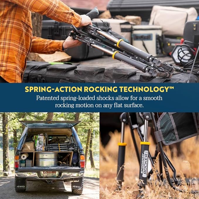 • OUTDOOR LIVING. Great for relaxing by the campfire or sideline, the Stowaway Rocker from GCI Outdoor is an adult rocking chair that's easy to carry and set up. Relax in comfort on your adventure with smooth rocking on any surface, anywhere.