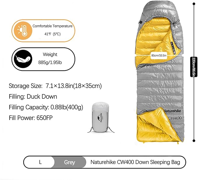 Naturehike Ultralight Down Cold Weather Sleeping Bag, 650FP Compact Sleeping Bag 3-4 Season for Adults & Kids, Backpacking, Camping, Hiking, Traveling with Compression Sack