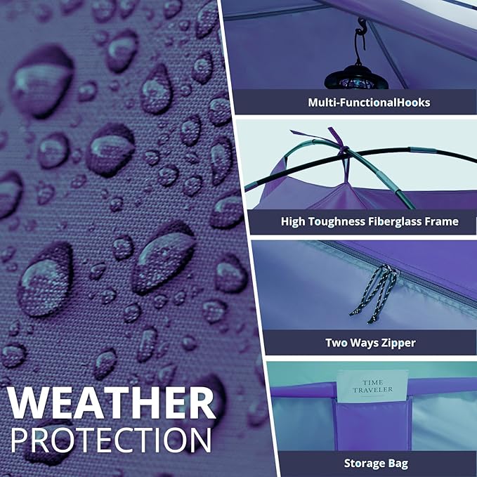 • 🎒【Lightweight and Portable Design】 Weighing only 9 pounds (6-person model), it can be packed into a 47"x8" tote bag - lighter than a beach cooler! The fiberglass poles can be locked in 90 seconds, perfect for car trunks, RV trips or lakeside picnics.