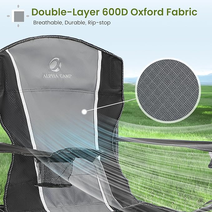 ALPHA CAMP Oversized Camping Folding Chair - Heavy Duty Steel Frame Support 350 LBS, Collapsible Padded Arm With Cup Holder, Quad Lumbar Back, Portable for Outdoor/Indoor
