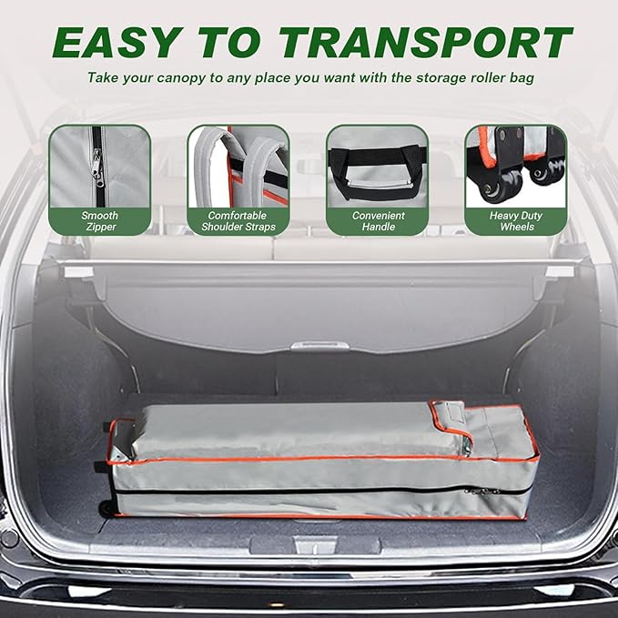 • High-Quality Construction:Durable high-grade engineered frame,powder-coated for rust resistance.Features a unique design that eliminates the need for cross bars running through the middle of the canopy,maximizes headroom inside the canopy. You and your guests will enjoy a spacious and open feel beneath the canopy, free from obstructions.