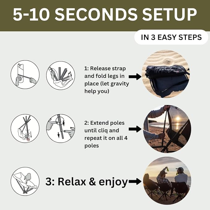 • QUICK SETUP: Set up your chair in just 10 seconds—perfect for impromptu breaks and relaxation. Ideal for outdoor chairs, beach chairs for adults, or camping chairs for adults.