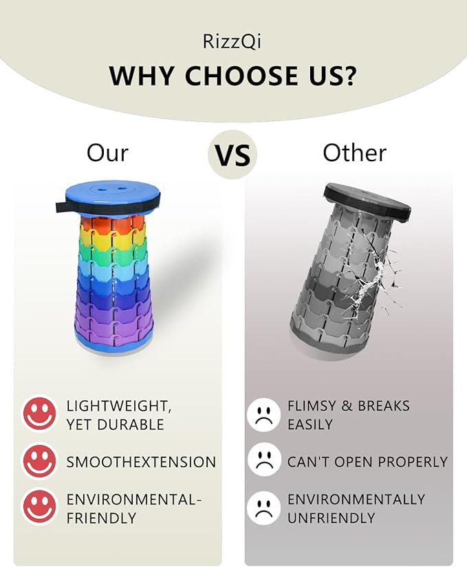 • Customizable Height for Comfort: The portable folding seat’s height can be extended from 2.5 inches to 18 inches, allowing you to easily find the most comfortable sitting position. Whether you prefer a lower seat for comfort or need additional height for various activities, our retractable stool can be effortlessly adjusted, making it ideal for the whole family.