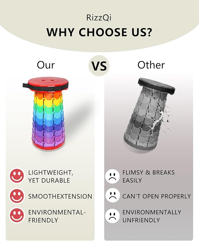 • Customizable Height for Comfort: The portable folding seat’s height can be extended from 2.5 inches to 18 inches, allowing you to easily find the most comfortable sitting position. Whether you prefer a lower seat for comfort or need additional height for various activities, our retractable stool can be effortlessly adjusted, making it ideal for the whole family.
