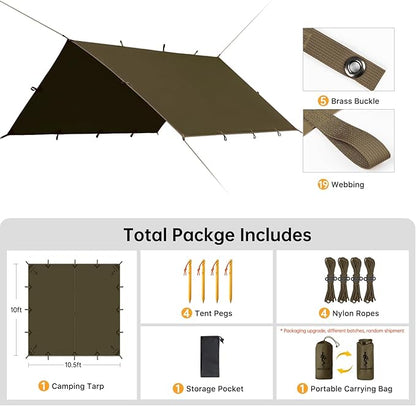 FREE SOLDIER Camping Tarp Waterproof Portable Multifunctional Outdoor Traveling Awning Backpacking Shelter Rain Tarp (Olive-Green 10×10.5ft)