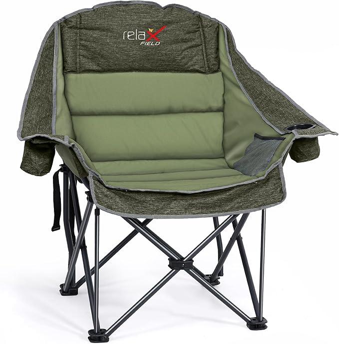 Oversized Camping Chair, Portable Folding Padded Camp Chairs with Side Pocket, Cup Holder, Heavy Duty Support 500LBS Outdoor Lounge Chair for Adults, Fishing, Sports, Trip, Green
