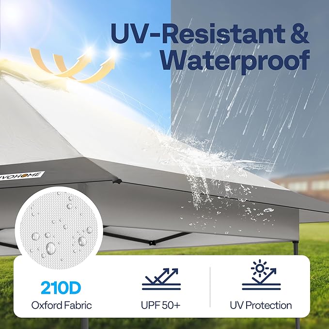 VIVOHOME10x10ft Pop Up Canopy Tent One Push Setup Outdoor Portable Shelter Tent Heavy Duty with Wheel Carry Bag and 4 Sandbags,2 Tiers Roof for Patio Garden Backyard, Gray