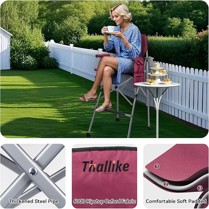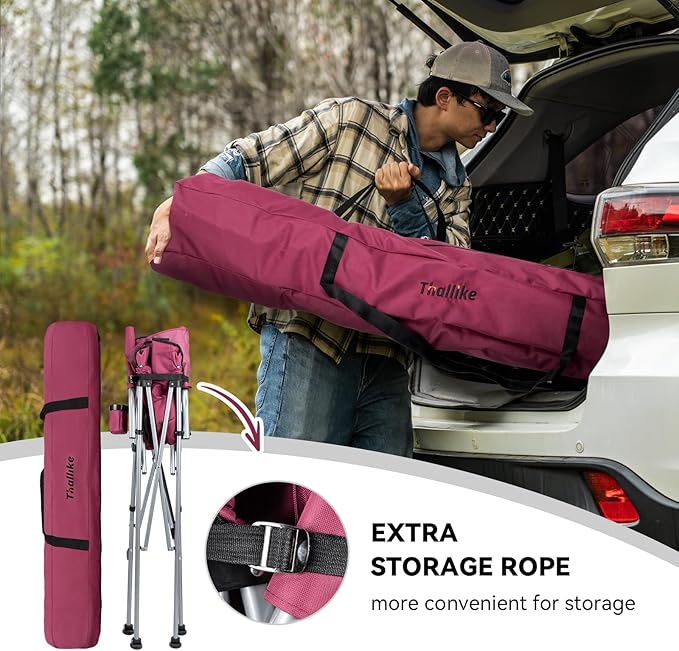 • Tall and Comfortable: Foldable camping chair is taller than traditional camping chairs. When you sit on this tall folding chair, your view will no longer be blocked by objects or people in front of you. This tall folding chair is equipped with comfortable padded armrest, which allows you to put down your arms more comfortably when you watch sports events or operate your mobile phone
