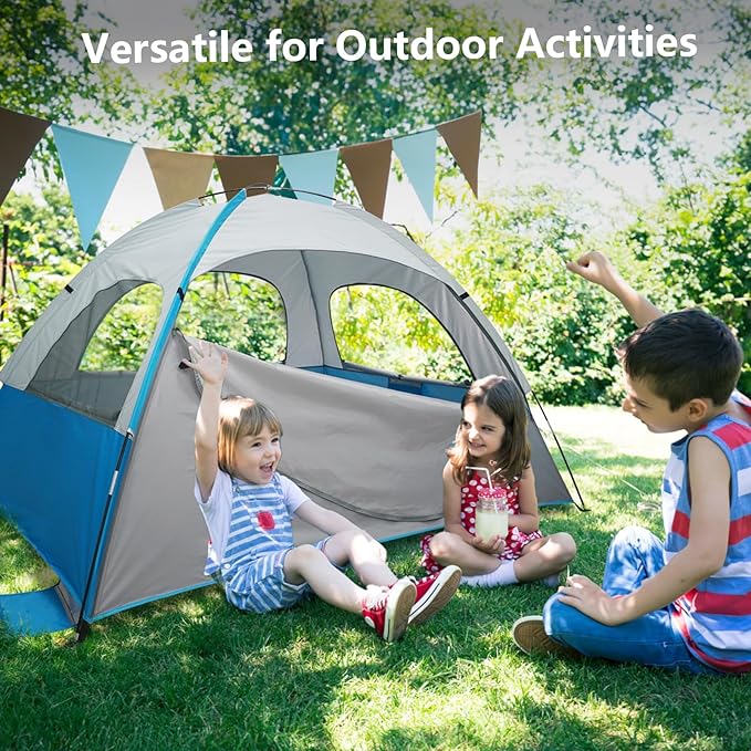 • Outdoor Activities Protection & Great Ventilation - Premium 210D sun-proof materials, with embedded coated polyester lining within, are able provide great UV protection (UPF 50+) and reflect or block up to 98% of unhealthy UV rays. The 3 large mesh windows provide excellent airflow to keep the tent nice and chill inside. So you can feel the breeze from the ocean, stay cool in the summer heat wave, and enjoy a comfortable and cozy sun shelter with your family and friends.