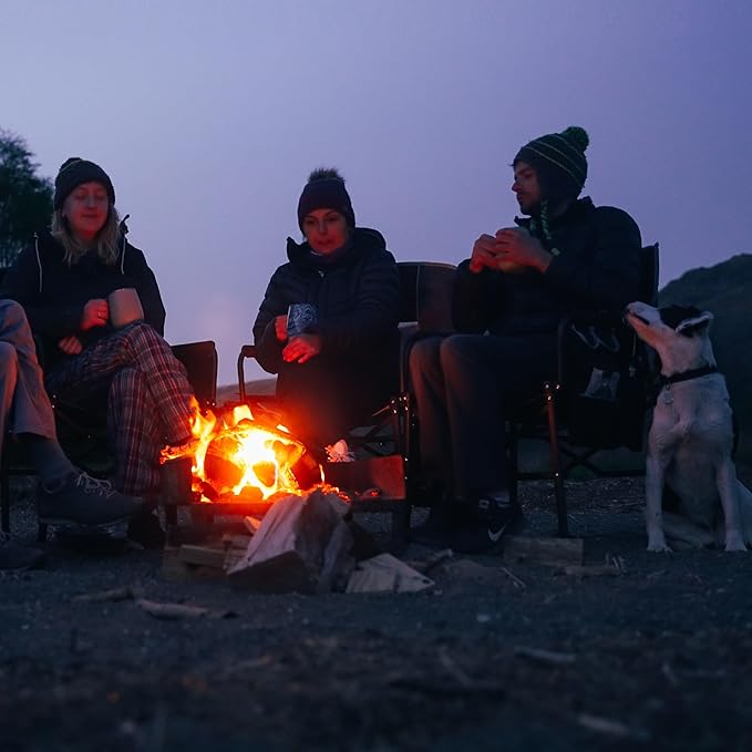 • Built to Last: The sturdy steel frame construction affords up to 300 LBS (136KG) and the heated camp chair weight of 13.4 LBS (6.1KG). The double-seam 600x300D Oxford Cloth & 200g mesh has great strength, durability, and breathability. This folding camp chair is great for adults Heavy Duty.