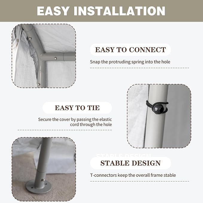 • Easy Assembly: No additional tool is required, Each part is marked with number, It's easy to follow the included instructions for step-by-step installation.