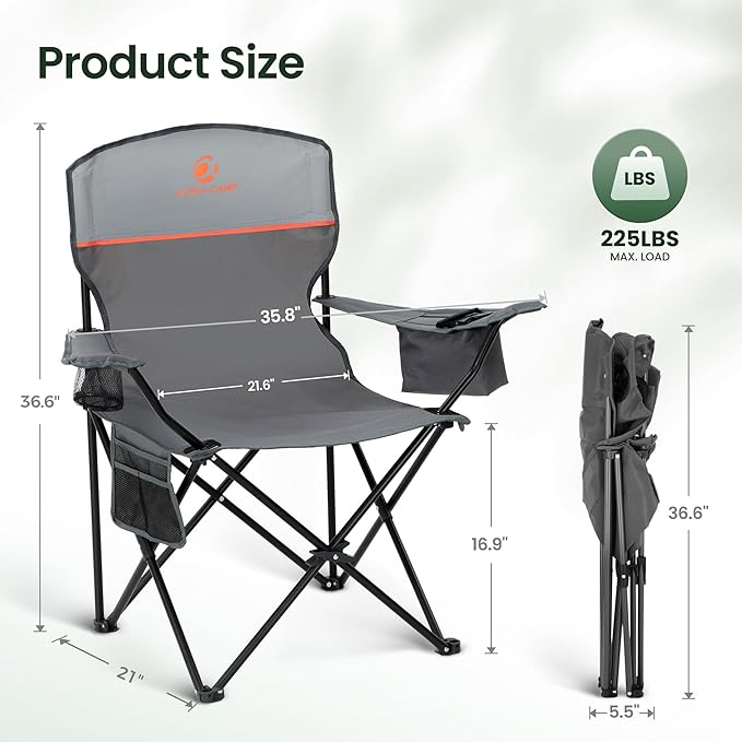 • Portable and Excellent: This portable camping chair is foldable. It is easy to set up and no tools required. This camping chairs for adults heavy duty with a carrying bag is easy to store and transport for travel or camping