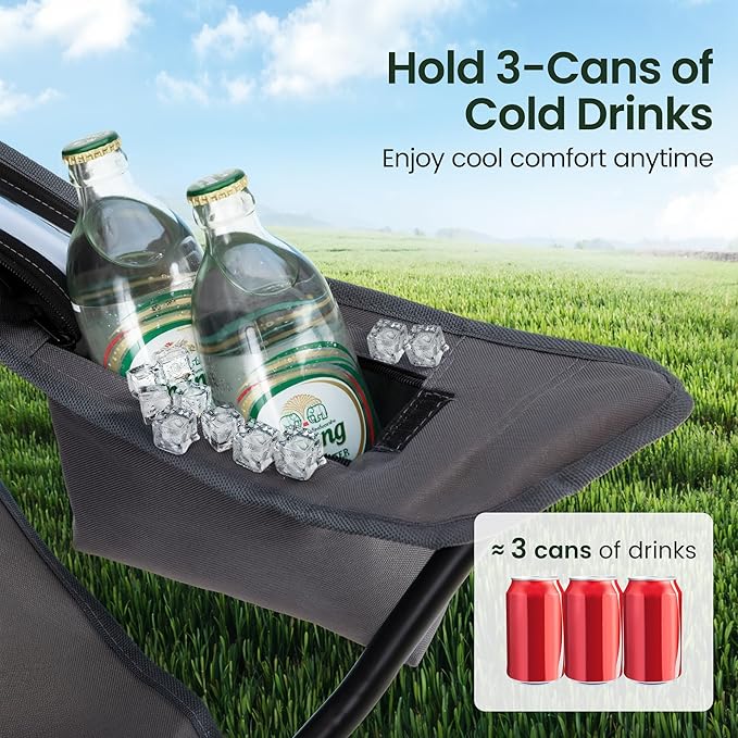 • Convenient Storage:Armrest with a durable mesh cup holder makes your hands free, while the cup holder supports your drinks and prevents spills. Cooler bag and mesh cup holder design will keep your drink cool on a hot summer! Side storage pocket storage your phone, magazine or larger items