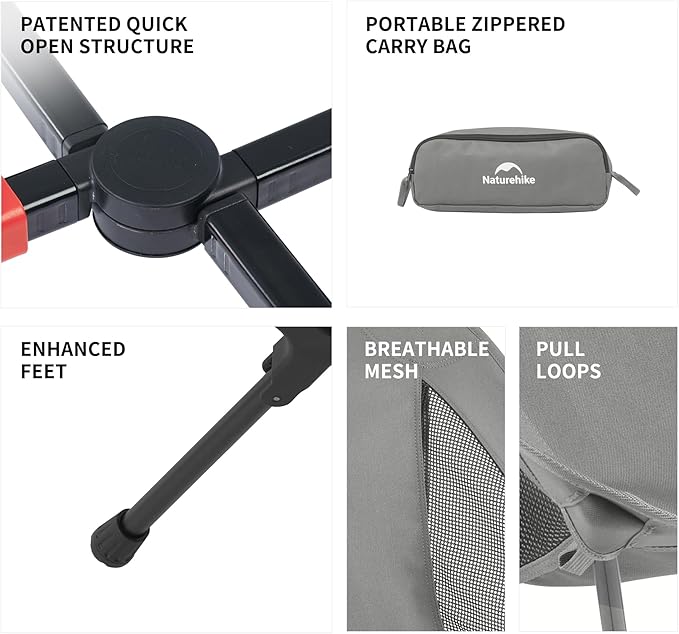 Naturehike YL01 Snap Camping Chair, 1 Second Setup Frame, 441lb Capacity, Portable Backpacking Chair with Storage Bag, Lightweight & Compact Folding Camp Chair for Backpacking Camping Fishing