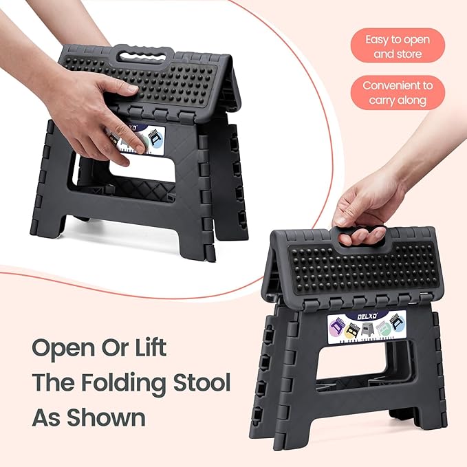 • Space Saving Foldable Stool : Delxo step stool save your closet space more than 90% when it folded up.It's quickly and easily folds away for convenient storage so you can opens with one flip of the hand.Also you can hides them in corner at home because it's so compact