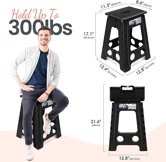 • Widely Use : Portable folding step stool for kitchen, bathroom, rv's and more. The internal structural design is unique makes the step stool extra strong and safe. It can hold up to 300 lbs Max !!! Please make sure the step stool is fully opened before use
