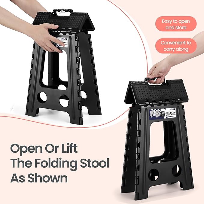 Delxo Folding Step Stool 17.5 Inch Non-Slip Foldable Stools for Kids & Adults Up to 300 LBS Kitchen Collapsible Fold Up Stepping Stool with Dotted 1 Pack Black