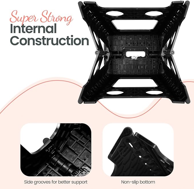 • Upgrade Dotted Texture : Unique Embossing design increases the stability of the folding stool and provides Comfortable to sit on and Non-Slip.Features improved the folding bar,which can prevent from collapse inward while standing on it