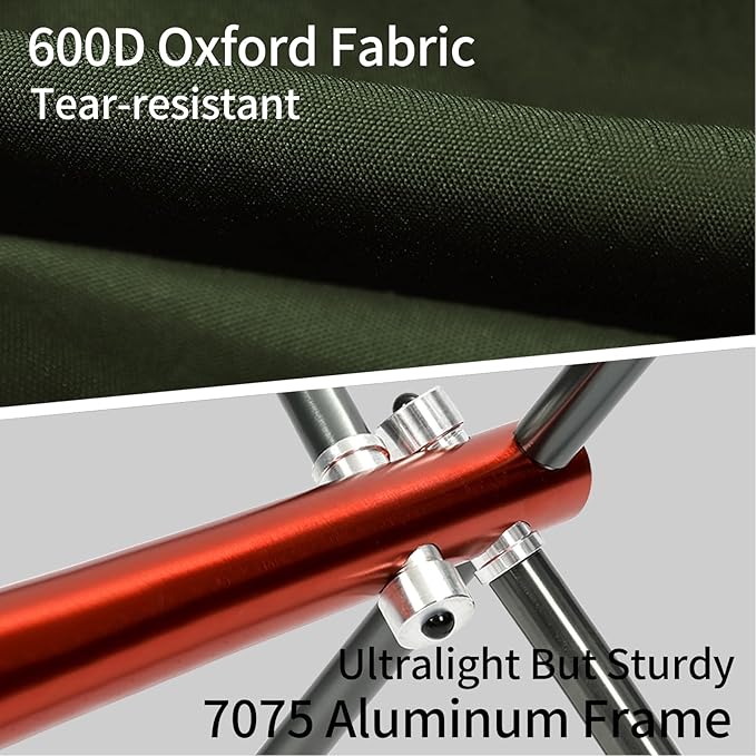 • 7075 Aluminum Frame & 600D Oxford Seat Fabric: The SHALLWE folding camping chair features a 7075 aluminum frame, offering both strength and portability. Weight: 3.84 lbs (1.74 kg), Max Load: 300 lbs, making it a heavy-duty camping chair suitable for adults. The 600D Oxford seat fabric ensures enhanced durability and comfort