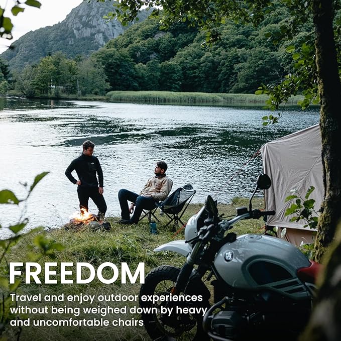 • ULTRA LIGHTWEIGHT & COMPACT: Say goodbye to bulky camping chairs! This backpacking chair ultra lightweight packs down to the size of a 1.5L water bottle and weighs just 3.23lbs. Its hollowed-out aluminum legs provide durable support without the extra weight, and no assembly is required-simply unfold and go!