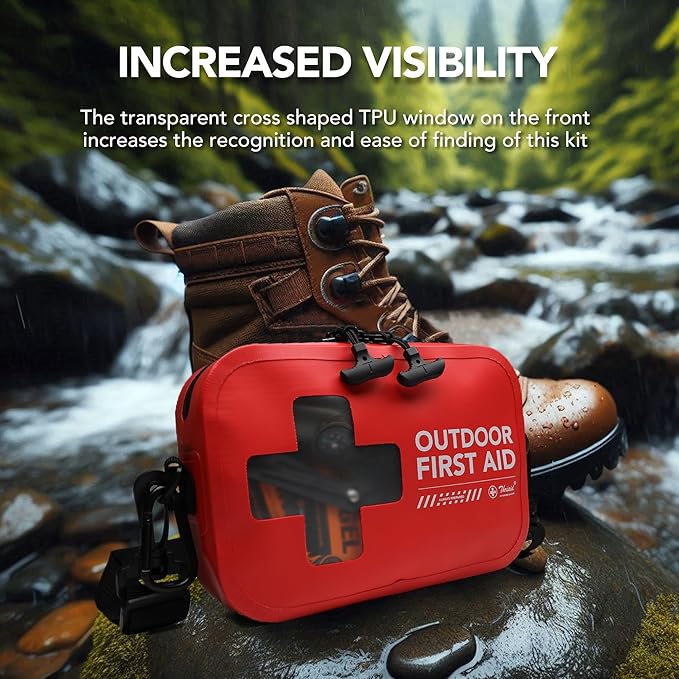 152 PCS Waterproof First Aid Kit, Portable Small Boat Dry Bag Bug Out Bags, Emergency Medical Kit Ideal for Boating, Camping, Fishing, Kayaking, Floating, Red